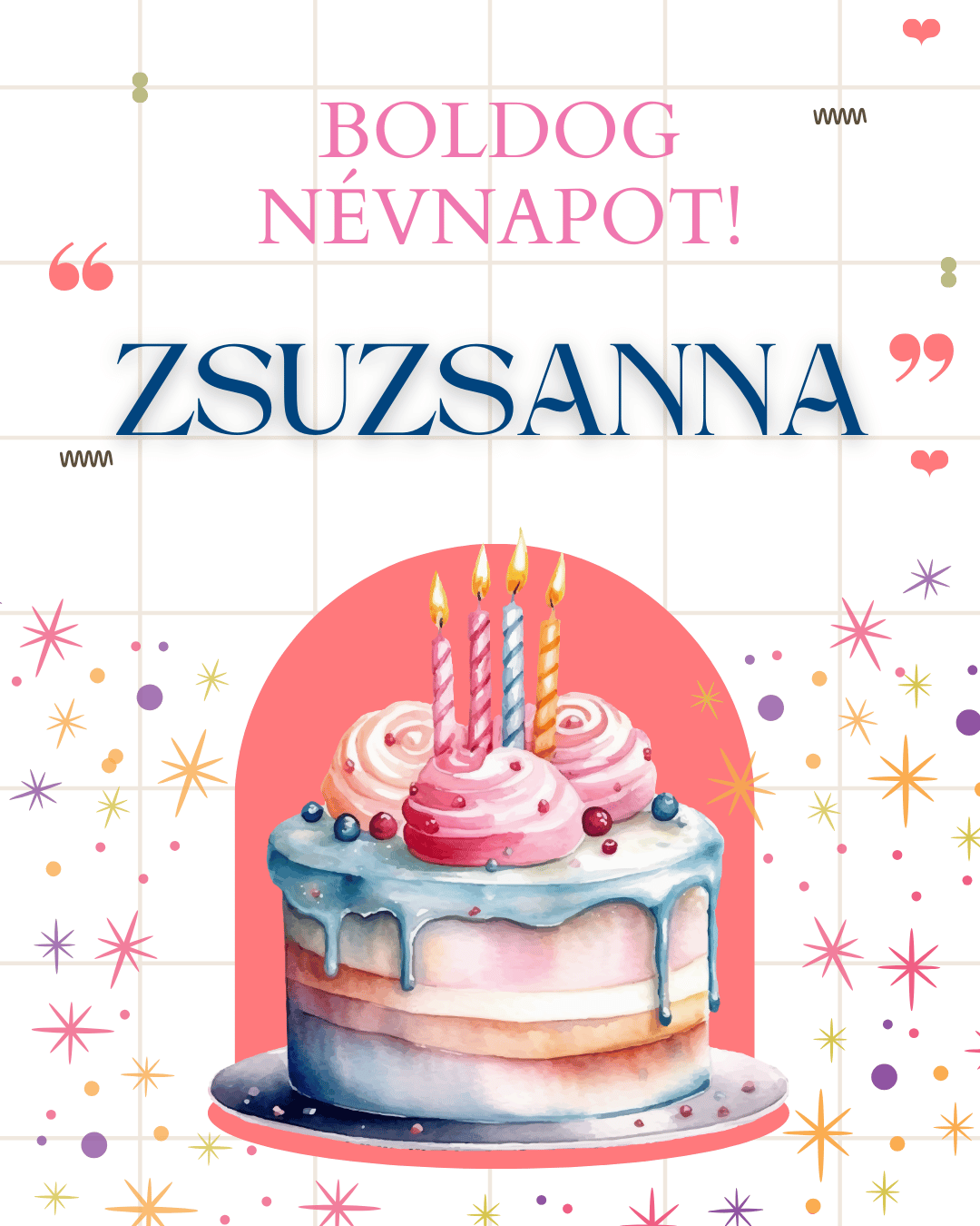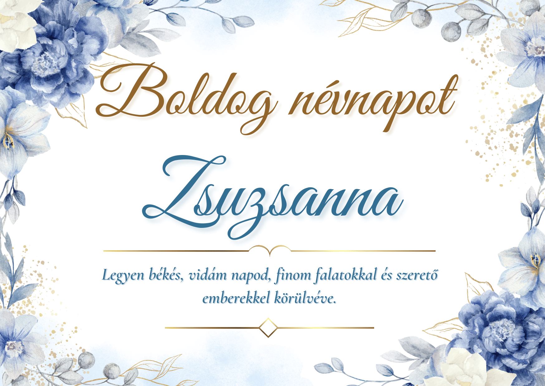 Zsuzsanna, névnapod alkalmából kívánok jó egészséget és sok mosolyt a mindennapokra.
