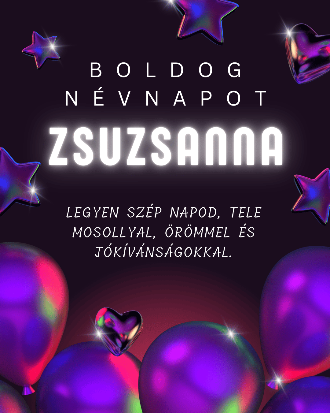 Kívánom, hogy zsuzsanna névnapod békés, vidám és emlékezetes legyen.
